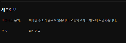 이렇게 하면 깔끔하지 않나? 라고 생각하실 수 있겠지만, 이게 한도가 있어요. 유튜버 10명 정도의 연락처를 조회하고 나면 아래처럼 표기됩니다.
